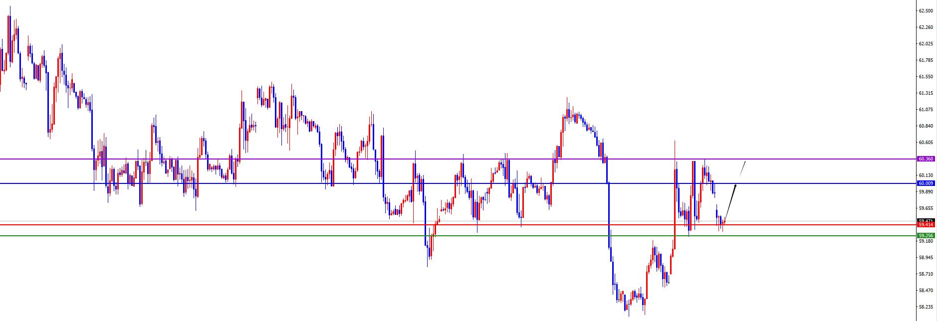 주요 분수령은 59.30-40입니다. 가격이 반전되기 전에는 이 위치에서 가격이 상승할 것입니다