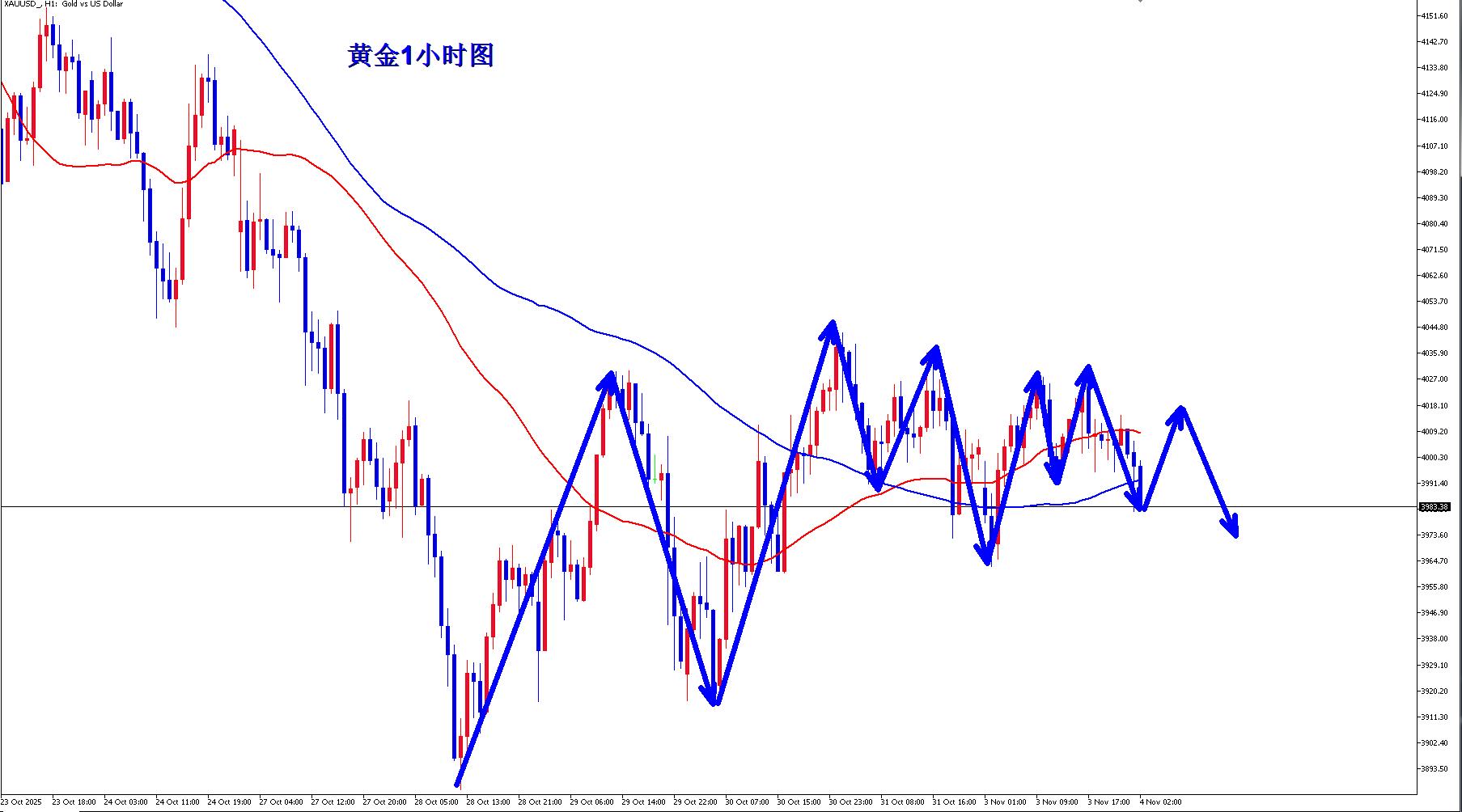 黄金1小时还是震荡,没有形成有效的方向突破,黄金现在反弹就还是继续空的机会,黄金多次上冲之后也没有形成有效突破,那么黄金整体的多头动能还不能形成向上突破的量能整体依然偏空,黄金4030一线最近也是重要的阻力位,没有出现单边强势之前,黄金反弹承压4030依然偏空。