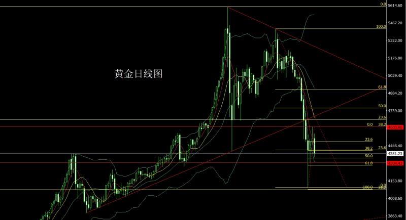 昨日黄金市场早盘开盘在4506.3的位置后行情先拉升给出4545.1的位置后行情强势震荡回落,日线最低给到了4350.4的位置后尾盘拉升,日线最终收线在了4381.2的位置后,日线以一根上影线稍长的于下影线的大阴线收线,而这样的形态收尾后,下方4120的多止损跟进在4200前日4310的多减仓后止损跟进在4315,今日的行情4475尝试空止损4481,目标看4430和4420和4400,跌破的话看4380和4365和4350跌破看4340和4332附近下方给出4320附近离场反手准备多。
