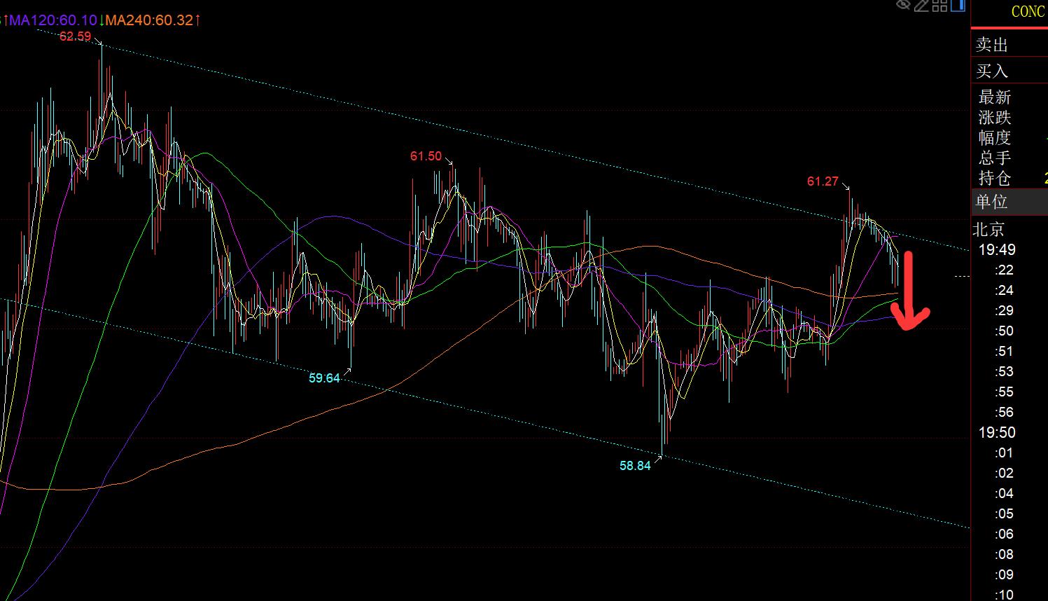 原油方面:它就是按震盪對待,空間也比較小,走的比較緩慢,通道上軌承壓回落,今晚關注60.2支撐,失守則留意59.8-59.6,再下去就會打開空間,逐步指向下軌;