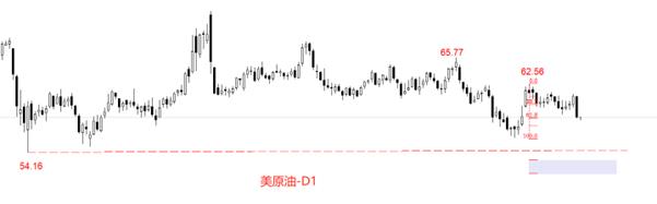 技術角度看,今年4月9日以來,美原油一直在支撐位54.16美元上方震盪,最高價曾達到71.47美元。目前行情處於震盪區間內向下限移動的過程中,昨日的長陰線起到了加速下跌的作用。黃金分割角度看,本輪下跌的目標價位在51~53美元之間,需要做好54.16支撐位被觸及的準備。