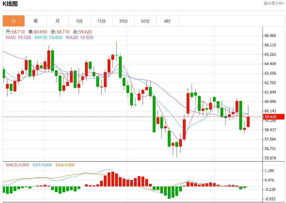 原油市場:截止北京時間21:20,美油上漲,現報59.610,漲幅1.58%。紐市盤前,(原油)價格在最後一個交易日強勁上漲,受到相對強勢指標積極信號的支撐,超過了EMA50的阻力,擺脫了負面壓力,為近期實現更多收益開闢了道路。